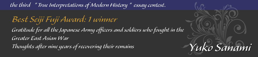 I’ll never forget the face of the soldier who said, “maybe we shouldn’t have lived this long.” To prevent even one person from thinking this I would like for Japanese people to share their appreciation with the former soldiers and officers all over the country. Now is the time for us to convey our gratitude to all of the Japanese Army officers and soldiers who fought in the Greater East Asian War.