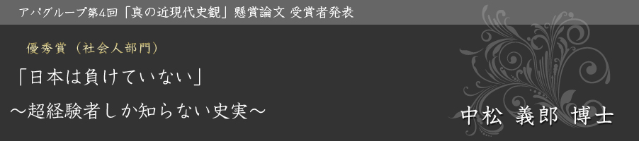 繰り返すが今迄「敗戦した」と殆どの人が思っている事は間違いであり、史実は「日本は負けていなかったのだ」という事を再認識し、これからの各人の行動を百八十度転換する事が日本再生の第一歩であることを確信し、日本が立ち直る起爆剤にするために本論文を発表したのである。