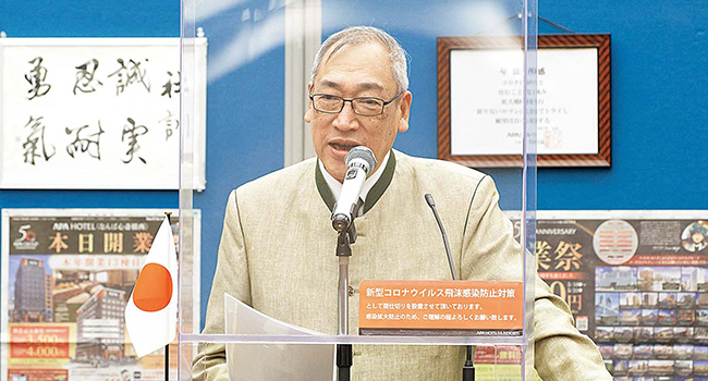 自由民主党副幹事長・衆議院議員の上野宏史様は、「アパグループ創業50周年、勝兵塾10周年という素晴らしいタイミングでお招きいただいたことに感謝している。昨日、通常国会が閉会したが、この国会でミャンマーに対する非難決議案は決議されたが、中国の人権侵害に対する非難決議案は残念ながら合意に至らなかった。昨年来、力を入れて取り組んできたのが南モンゴル、すなわち内モンゴル自治区の問題である。昨年9月に南モンゴルで母語教育が中国政府によって制限されることになった。これを受けて、昨年11月にモンゴル母語保護運動という国際会議を議員会館で開催した。また今年の3月に南モンゴル問題に関する勉強会を立ち上げ、4月には南モンゴルを支援する国会議員連盟を立ち上げた。議連の会長を高市早苗先生に、幹事長を山田宏先生にお願いした。引き続き活動を続けていくので、ここにいる皆様にもご支援を頂きたい。私がモンゴル問題に取り組んできた理由が2つある。一つは、2001年から3年にかけてハーバードのケネディスクールに留学していた時のモンゴル国から来ていた同級生が、後に大統領になったエルベルドルジ君で、このエルベルドルジ前大統領と留学時代に友人だったという縁があったことである。もう一つは、モンゴル国が日本にとってとても大事な国であるということである。エルベルドルジ前大統領が来日して日本の参議院の議場で演説をした際に、日本とモンゴル国は補完的に成長していける関係にあるという話をされた。モンゴル国は日本に比べて人口は非常に少ないが若い国で、非常に広い国土を持ち、資源大国でもある。中国の中でも内モンゴル自治区は最も資源が豊富な地域である。こうしたところに日本がしっかり関わっていくことが、日本の国益に大きく資するだろう。エルベルドルジ前大統領も内モンゴル自治区で母語教育が制限されることに大変な危機感を持ち、『これは中国政府による文化的なジェノサイドだ』と発言された。中国では憲法によって母語教育を受ける権利が認められているはずだが、学校において国語や歴史、道徳の授業を母語で受けることができなくなった。当然南モンゴルでは反対の活動も起こったが、日本に正確な情報が伝わって来ず、外務省も把握ができていない。報道によれば、数百人、数千人、情報によっては数万人という話もあるが、多くの方々が中国政府によって拘束をされたという情報がある。我々はモンゴル国および南モンゴルとは歴史的にも深い関係がある。拉致問題についてもモンゴル国において様々な交渉が行われてきた。エルベルドルジ前大統領が来日して国会で演説をした際に、『日本人とモンゴル人は同じ天からの印を持つ共通の民族である』という発言をされた。モンゴルは言語も非常に近い親日的な国である。今年の4月に南モンゴルを支援する議員連盟を立ち上げ、日本に住む多くのモンゴル人にも支援を頂いている。日本が先頭に立って世界で初めて南モンゴルを支援する議員連盟を作ったことは意味のあることであり、国際的にも様々な発信をこれからも続けていきたい。」と、南モンゴル問題への取り組みについて語られました。
