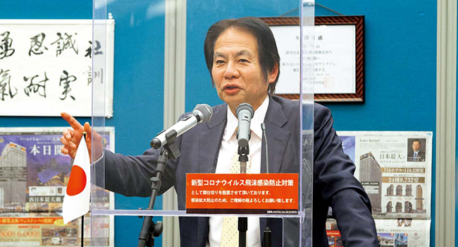 冒頭のアパグループの元谷外志雄会長による塾長挨拶では、「科学技術が発達してくると、領土、領海、領空から宇宙にまで対応していくような体制を取らないと、いつの間にか侵されてしまい、気付かずになし崩し的に自国の権益を失ってしまいかねない。「備えあれば患いなし」という言葉もあるように、覇権争いの中で、我が国も宇宙から深海まで十分な備えをしていく必要がある。特に深海では、無人潜水艦で自爆攻撃ができるようなものの開発を進めていくことが考えられる。そのような備えをして、危険に巻き込まれないようにしていく必要がある。」と述べました。