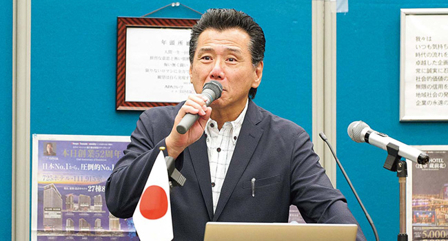 冒頭のアパグループの元谷外志雄会長による塾長挨拶では、「本当はどうなのかを知る機会として勝兵塾を開催してきたが、いろんな観点から議論を交えて本当のことを見出すとともに、日本がどういう思いでかつて戦い、その結果どうだったのかを知ることが重要である。もし日本が戦っていなかったら、いまだに西洋列強による支配が続き、人種差別の時代が続いていただろう。そういう意味では、戦いには負けたが、日本が戦ったことで世界から人種差別がなくなったのではないかと思っている。」と述べました。続いて、プレジデントオンラインアカデミーの塾長のインタビュー動画「アパグループ会長 元谷外志雄〈前編〉 「天才経営者が教える「非常識なもうけ方」」を視聴致しました。