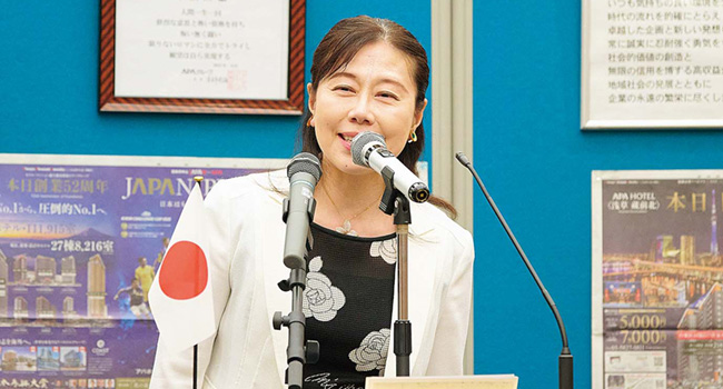 株式会社メキキホールディングス研修・道場事業部長の小笠原悦子様は、「私は岩手県の釜石市で生まれたが、友達から『遊ぼう』と言われても『後で』と言って断わることができずに母に断ってもらうような子供だった。それが、20代の時に、五反田駅の電話ボックスに小さな広告をペタペタ貼っている人がいて電話を使えず多くの人が並んでいたので、こんな迷惑なことはないと思い、電話ボックスに入っていった。『お前何するんだ!』と言って胸倉をつかまれたが、両隣の電話ボックスから男性が来てくださったので助かった。その時に、『後で』が言えない子供だった私が、誰かが困っているところを見ると人のために行動することができることに気付いた。大和心はそのような精神を持っている。『小川がさらさら』、『雨がしとしと』。大和の人は物言わぬ声を聴くことができる。日本語にはオノマトペという状態を表す言葉が非常に多いと言われている。何年か前に車を運転していて、右折したところに突っ込んでくる車があってぶつかった。その人は女性で、地元だったのでご主人を呼んで『ああでもない、こうでもない』と話していた。その時に私の主人が『痛み分けだよね』と言い、この一言で相手の夫婦は黙った。これを漢語でいうと『折半』となるが、響きが違う。大和の言葉にはこんな力がある。コロナでしばらくできなかったが、釜石出身者の集まりが四年振りに東京で開催された。その会の終わりに、ある高齢の男性が石森会長を呼べと怒鳴ってきた。その光景を見たときに私は笑いが止まらなかった。私がその男性に、『石森会長と早く話したかったんですね。』と話しかけると、怒っていたその男性が急ににこっと笑い、『俺はあいつが好きなんだ。』と話し出した。怒っている人のその奥にある声を聴いて受け取ってあげると怒りが静まる。また、ある男性は、家に帰ると毎日奥さんが『太郎が…』と子供の愚痴ばかり話すので、『どれだけ太郎を愛してるんだ!』と言ったら、それ以降愚痴を言わなくなった。日本人は、人が思っている本当の声を聴くことのできる研ぎ澄まされた感覚を持っているが、最近のZoomなどのオンラインでは裏で別のことをしていたりして、話の辻褄が合わないことがある。本当は聴く力があるのに今は忙しくて本当の想いの声を聴かなくなっている。それが嘆かわしく、危惧している。日本人が本来持っている研ぎ澄まされた言葉にならない声を取り戻したいと思っている。AIの時代で良い仕事をするが、思いを馳せることはできない。思いを馳せて日本の心を継承していこうではありませんか。」と、大和心の大切さについて語られました。