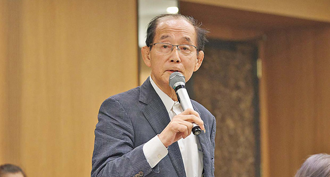 元環境大臣で弁護士の原田義昭様は、「稲村君は官僚として後輩になるが、郵政民営化では体を張って反対の論陣を張り、職を賭して頑張り抜いた。中村恵子さんが北海道のことを話されたが、私も小学校の4年間、北海道に住んだので道産子の誇りだけは持っている。中村さんが立派な賞を受賞されたときには私もとても喜び、爾来親しくさせて頂いている。北海道はアイヌの地域と言われているが、実は江戸時代から松前藩を中心にしっかり管理、保護してきた。一方、アイヌ民族に対して先住民としてどのように接していくべきか、難しい問題ではある。ヨーロッパ諸国がどこの大陸に行っても原住民を殺して植民地をつくっていったのとは訳が違う。江戸時代に松前藩がアイヌと共存しながら今日の北海道があると思う。私も道産子の一人として中村さんの歴史観をしっかりサポートしていきたい。8月24日に福島県の処理水が大洋に放流されるようになった。4年前、私が環境大臣だった時に、福島を視察した。高台から原発の施設を見てびっくりしたので、東京電力の役員に『このタンクは何だ』と聞いた。当時920個のタンクがあったが、原発施設を通った雨水や地下水をタンクに貯めていると説明していた。当時原子力規制委員会の委員長が、私にこっそり『全然心配は要りません。』と言っていた。そこで私が記者会見で、『処理水を外に出しても問題ないんじゃないか』と言ったら、これが大騒動になった。今回、韓国の尹大統領が韓国国民をしっかり説得してくれたことと、IAEAが大丈夫だと太鼓判を押してくれたことで、政府は処理水の放流を決定したと思う。個人的に勝兵塾は私にとって最も知的なトレーニングの場であると思い、元谷塾長には大変感謝している。」とコメントをされました。
