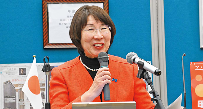 健康・環境デザイン研究所所長の中村恵子様は、「『江戸幕府の北方防衛』という私の著書が第五回アパ日本再興大賞優秀賞を受賞した。本書の意義は北海道に残っている江戸幕府、松前藩、東北諸藩の史跡や文献に基づき、体系的に江戸幕府の北方防衛を知らしめたことである。そして、現在起きている北海道を奪い取ろうとする動きを伝えている。本書の執筆動機は、2019年3月の文部科学省の教科書検定で、東京書籍の小学六年生用の歴史教科書『新しい社会6歴史編』で、江戸時代初期の対外貿易を学ぶための日本地図について、当初は日本全体が赤で塗られていた地図を、児童が誤解するという理由で北海道、北方領土を白く修正しなさいという検定指示で合格したという事件である。これは北方領土を日本領土とする政府見解と矛盾しており、江戸時代は蝦夷地が日本ではないという誤解を与えることになる。蝦夷地が日本でないことにしようとする超限戦が仕掛けられていると推測された。2019年4月16日、産経新聞に『自民党が文科省を聴取へ 北海道以北領土外扱いの教科書を巡り』と記事が出ていた。それに対して柴山昌彦文部科学大臣(当時)は、北方領土が日本固有の領土であるとする政府見解とは矛盾しないと強調する一方、児童が誤解しないよう、学校現場における適切な指導を求めた。」と言った。しかし、内閣府のホームページでは、江戸時代初期の1635年に、北海道を支配していた松前藩が北方領土の調査を行ったことが明記されている。また5月10日の産経新聞には、『新しい歴史教科書をつくる会』が柴山昌彦文科大臣に対して検定意見の取り消しを求める要望書を提出したと報じている。これに対して文科省は、当時は江戸幕府の支配が北海道の全域には及んでおらず、日本の色である赤にすれば児童が誤解する恐れがあると判断したと、事実誤認の回答をしている。これに対して『つくる会』は、『北海道庁作成のパンフレットによれば、7世紀から日本国家の支配が北海道に及んでいた。北方領土を固有領土とする学習指導要領の趣旨に反する』ため、検定意見の撤回を求めた。このような経緯があるので、私は昨年3月に公表された新たな検定結果に注目した。新たな検定で合格した東京書籍の問題となった『地図』は、北海道以南の赤とは対照的に北海道以北がより鮮明な黄緑になって検定を通っている。まるで北海道以北が日本の領土でないかのように児童に誤解を与えるものである。その他にも、江戸時代の説明をする地図から蝦夷地を消して松前藩がなかったかのような印象を与える表記が散見された。さらにコラムには、『江戸時代北海道は蝦夷地と呼ばれていました。ここではアイヌの人々が狩りや猟で得たものを日本や中国の商人と取引していました。(中略)17世紀半ば、シャクシャインに率いられたアイヌの人々は不正な取引を行った松前藩と戦いました。』と、蝦夷地はあったが松前藩を含む和人は悪という枠組みで書かれている。その他にも、アイヌの土地や言葉を奪い、差別を強め、和人の北海道開発は悪であるとの事実誤認の記述があるが、これらも子供たちに誤解を与え、日本人の開拓の誇りを奪うものである。この教科書では蝦夷地について触れるのはアイヌのことのみで、和人の立場の記述がない。これでは一体どこの国の教科書かと思う。子供たちに何を教えたいのか? 何よりもアイヌの人達は日本人である。このような教科書で学び続けたら、江戸時代の蝦夷地はアイヌのものだったと思ってしまうだろう。では次の展開をどう進めるかであるが、教科書副読本の改竄を改めなければならない。自治体が賢明な教科書の採択、そして国会議員の方々には国会で再度教科書検定のあり方と制度の再設計を議論して頂きたいと思う。」と、教科書を通して行われる、蝦夷地は日本でないかのような刷り込みについて語られました。