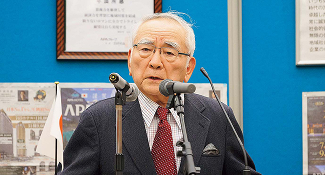 冒頭のアパグループ元谷外志雄会長による塾長挨拶では、「テレビや新聞も本当のことを伝えていないが、私は勝兵塾を本当のことを知る機会として頂ければと思い開催している。毎回様々な立場の講師から、それぞれの観点で発表を頂いている。発表を希望する方はぜひ申し出てほしい。今回も講義や質疑応答も含めて、意義の深い月例会となってほしい。」と勝兵塾への思いを述べました。
