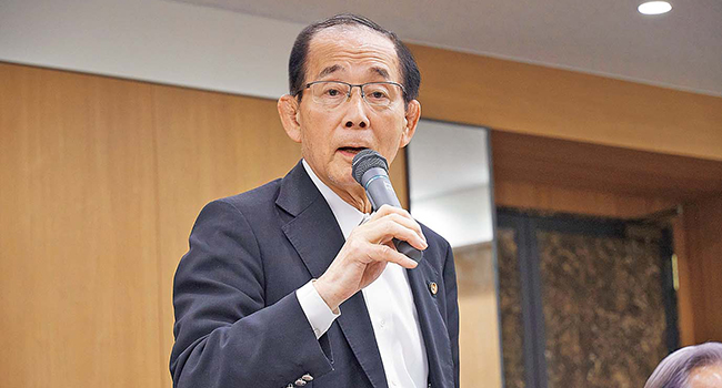史実を世界に発信する会 会長の茂木弘道様は、「4月に出版した『日中戦争真逆の真相』という本は、『日本が中国を侵略した』と誤って定着している日本侵略者説を、徹底的に論破する目的で書いた。中国は侵略を受けたとして日本を非難してきたが、そもそも『日中戦争が中国国内で戦ったから侵略に決まっている』というのが錯覚なのである。実際には、義和団事件以降に日本軍は居留民保護の目的で合法的に中国に駐屯していた、当時わずか約5千人の日本軍が、一方的に中国から攻撃されて開戦したのが日中戦争である。始まりは昭和12年の盧溝橋事件であるが、夜間演習中の日本軍歩兵連隊に対して実弾が打ち込まれたことがきっかけである。事件発生4日後、両軍で結ばれた現地停戦協定には第一項で中国軍が日本軍への発砲を謝罪しており、これは中国側から攻撃を仕掛けたという明白な証拠であるにも拘らず、どの教科書にも盧溝橋事件が起こったとしか記述されていない。なお、『新しい歴史教科書をつくる会』の教科書には現地停戦協定の原文を掲載している。そして発砲事件の実行犯は中国軍に潜入していた共産党員であり、停戦協定後もコミンテルン指令のもと、日中全面衝突の目的達成のため要人の抹殺も辞さない活動を展開する。そこで日本軍は居留民の安全確保、自衛権行使のためにやむなく追加の派兵を決断した。その矢先に7月29日に通州事件が起こる。これは日本人・朝鮮人居留民と日本軍守備隊計257名が惨殺された事件であり、これを機に日本国内では暴支膺懲と呼ばれる反中ムードが巻き起こった。しかし日本政府はこのムードに与せず、『船津和平案』と呼ばれる、日本が満洲事変以降に北支で得た権益のほとんどを返還する代わりに、日本・満洲・中国政府で共同して共産党に対抗するという画期的な和平案を決定した。しかし、和平交渉中に上海の日本軍の大山中尉が中国軍保安隊に惨殺される事件が起き、交渉は雲散霧消した。その後8月に、中国軍は全国総動員令を出して大本営を設置し、上海に70万もの軍隊を投入した。戦線を拡大させたのは中国の方であり、日本は上海の防衛を強いられた。私に言わせると、これは上海事変ではなく、もはや全面的な戦争である。日本は苦戦しながらも防衛に成功し、ドイツのトラウトマンを仲介役に和平交渉までこぎつけた。きわめて穏健な内容であるとドイツからも評価された和平案にも拘わらず、蒋介石は再三にわたり拒絶したことで、日本もとうとう堪忍袋の緒が切れ、和平から方針転換し、最終的には昭和13年1月16日に近衛首相声明として『国民政府を対手とせず』と発し、戦争が泥沼化した。付け加えると、大陸侵略を日本の軍部強硬派が先導した、というのも嘘であり、むしろ近衛声明が中国との長期戦を招くとして最後まで反対したのは陸軍参謀本部であった。まとめると、日中戦争の原因を作ったのは中国共産党なのであり、これを日本の中国に対する侵略戦争とするのは大きな間違いである。」と熱弁されました。