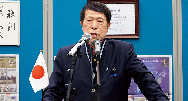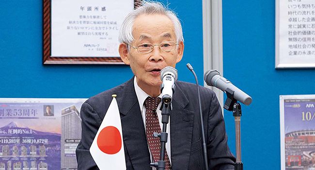 冒頭のアパグループ元谷外志雄会長による塾長挨拶では、「勝兵塾を東京・大阪・金沢の3会場で毎月開催しており、今回は東京で160回目の月例会となる。各メディアが報じない『本当はどうなのか』を知る機会となる場として、今回も様々な意見を活発に交わしていただきたい。」と述べました。