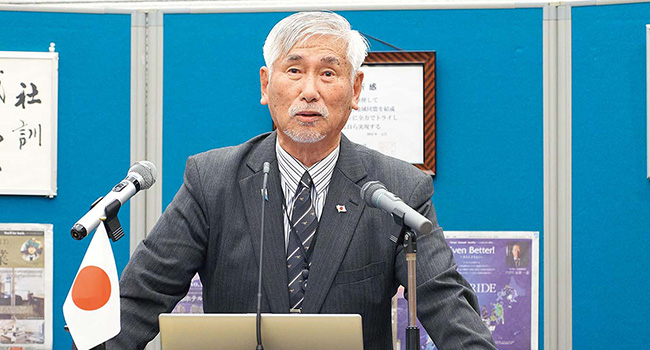 一般社団法人笹川経済支援機構理事長の笹川能孝様は、「私の祖父の兄である、笹川良一がどういう人物であったのかについて申し上げたい。まず、笹川良一の大きな遺産として日本財団が現在まで存続している。笹川良一は世界初のモーターボート競走による公営ギャンブル事業を立ち上げ、自治体財源を確保した。また、笹川良一の政治姿勢であるが、彼にとって保守や革新ということはさほど問題ではなく、強い愛国心を持って生涯1人の個人として政治家や大企業、メディアと闘い続けた人間であった。国防については生前にあるインタビューで、『日本は今後共産主義が増加し、中国との関係性も悪化していく。家屋を守るためには戸締りが必要だが、国家もそれは同様である。戸締りによって外国の襲来を防ぐ必要があるが、日本は国防省による防衛ではなく、国防の志を持つ日本人によって国防社というものを立ち上げる必要がある。』と答えている。その発想から彼は思想活動を行い、純日本主義の思想団体を主導していく。国を愛する大衆右翼であり、一方で国会議員に対しては、利権によって事実を捻じ曲げ、優勝劣敗を進めるものと批判していた。そしてまた彼は投資家としての側面も持ち合わせており、株や先物を通じて柔軟に逆張りの発想で収益を上げ、活動資金としていた。彼は事業家・経営者だけではなく投資家としての抜群の感性を持ち合わせており、なかなか実行には移せない逆張りの発想で利益を上げ続けており、その収益を自分のポケットマネーとはせず、世界のため社会のために使っていた。また、私が今年1月に河合保弘氏と共著で出版した『非暴力&非服従の人 笹川良一物語 日本人最後のファンタジスタ』という本についてご紹介したい。今回、特にターゲットとしたのは10代・20代の方。その層へもアプローチしやすいように、若い女性に表紙の笹川良一像を、敢えてプロフィールを渡さず顔写真のみで書いてもらい、マンガチックな表紙にして出版した。そして、中身も宝塚歌劇団の舞台のように、会話調の文体として分かりやすくまとめている。その結果、約30%が20代以下の若い方に読んでいただけることができた。」と、故笹川良一氏について解説されました。