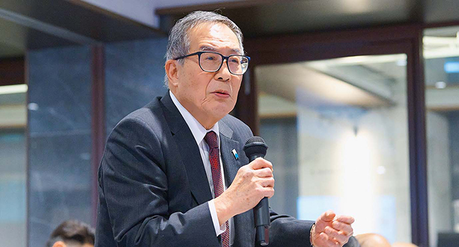 慶應義塾大学名誉教授・公益財団法人アパ日本再興財団理事の塩澤修平様は、「経済安全保障、特にエネルギーと食料について、日本政府としてどのような議論から始めるべきか?」と質問され、前原様は、「エネルギーについては、今後AIや電気自動車が普及し電力消費量が増える一方、カーボンニュートラルの目標も両立させるには、現実的には原子力の再稼働が大きな方策となる。私は石破氏、武見敬三氏と共に議員立法により海洋基本法を制定させ、海洋エネルギーを利用した発電の普及を目指しているが、現時点では原子力に比べわずかな発電能力である。食料についてはゲノム編集の安全性に確たるものはなく、まずは伸びしろのある北海道の食料自給率を高めることが現実的だと考えている。」と答えられました。