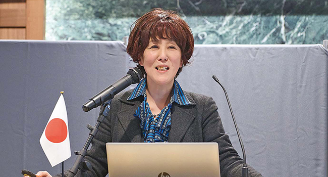 自衛官守る会会長・国防ジャーナリストの小笠原理恵様は、「ウクライナ戦争から見える近代戦の戦い方、中でも非致死性毒ガスとドローン攻撃について、ユーロサトリというフランスで隔年開催されている国際防衛・安全保障展示会での情報をもとにお話しする。化学兵器禁止条約で開発や生産、使用が禁止されている化学兵器は、化学物質を含む爆薬等で爆発することで人を殺傷する兵器であり、これに合致しない合法的な毒ガス兵器がウクライナ戦争で使用されている。近年で最も問題となっているのが窒息性の毒ガス兵器である。オピオイドと呼ばれる医療用麻薬性鎮痛薬のうち、フェンタニルというモルヒネの100倍近い毒性のある物質が、窒息性が高いガスとしても知られている。アメリカでは年間6万人以上が合成麻薬の過剰摂取で死亡しており、2020年からの2年間における米国内のフェンタニルによる死者数は、アフガニスタン・イラク・ベトナム戦争で殺された米国人の総数よりも多い。こうした事態を受け、トランプ大統領もフェンタニルに関しメキシコ・カナダからの流入を厳しく取り締まっている。一方、自衛隊の装備で最も普及しているのは防護マスク4型と言われるもので、ロシアの第4世代の毒ガス、ソマン型と言われる微粒子毒ガスには効き目がなく、これには最新型である18式個人用防護装備でないと対処できない。次にドローンについて、自衛隊でも令和8年に310機のドローンが導入される予定だが、ウクライナでは年間400万台のドローン生産能力があり、規模が桁違いである。種類も用途に合わせ様々なものがあり、特に強力なのが成形炸薬弾という、液体金属の高圧噴流により装甲車を撃ち抜き、同時に内部を燃焼させる爆撃である。他にも塹壕を見つけて自爆するものや、毒ガスがないか大気を調査するものもあり、ドローンによる省人化が戦場で進んでいる。また、ドローン対策として日本は無線のジャミング研究を行っているが、ウクライナでは有線で7㌔㍍飛べるドローンがあり、そうした研究はこの有線ドローンには通用しない。以上のような戦場の変化に対して情報を得てどのように戦うのかを真剣に考えなければいけない。最後になるが、Hanada新書から『こんなにひどい自衛隊生活』という本を出版しており、また月刊Hanada最新号(3月号)では元陸上幕僚長の岡部俊哉氏と巻頭で対談している。これらが自衛隊の待遇改善そして現代の戦場について再考いただくきっかけとなると幸いである。」と話されました。