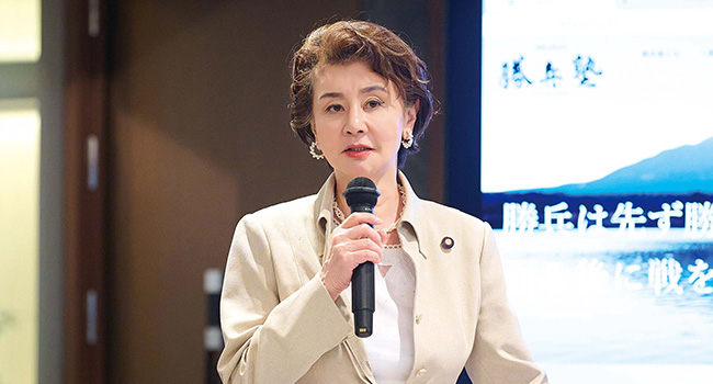 参議院議員の石井苗子様は、「10月4日に控えている自民党総裁選について、報道では高市氏と小泉氏がクローズアップされているが、議員内の意見としてはそれ以外の候補を含めどうなるか分からないといった状況である。また、国会で論点として最も注目されているのは日本在住の外国人に対する法整備等をどう進めていくのかということ。労働力不足解消や紛争からの避難を目的に、急速に高まる外国人の流入需要、供給に対応しなければならない。その他の論点としては憲法第9条第2項がある。自衛隊を英語でいうとSelf-Defense Forcesであり、自国の人命・財産・国土が侵された場合に自衛するものであるが、このSelfを取って国防軍とする議論があり、その先にはアメリカだけでなく、オーストラリア、フィリピンといった国と四海同盟を結び、中露朝に対抗する同盟を結ぶ構想がある。この場合、同盟国の危機に際しどこまで国防軍を派遣するかという点について議論が進んでいる。またそれ以外にも社会保険制度や自衛隊の定員割れ対策など多くの論点があるが、勝兵塾のご意見を参考にして日本のよりよい将来に向け行動していく。」とお話しされました。