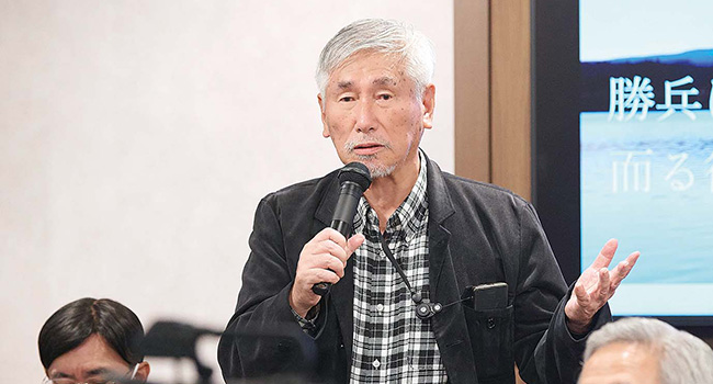 敬愛大学名誉教授、IPU環太平洋大学国際経済経営学部教授の藪内正樹様は、「現代の戦争は軍産複合体の思惑によるビジネスの側面が強いとは思うが、その点についてどのようにお考えか?」と質問され、照井様は「現代の戦争は、各国が各々の兵器を造るわけでなく、軍産グローバル企業が兵器を造るため、一つの戦争をやめるには別の戦争をやるしかない。彼らの動きを理解するにはカネの流れを追う必要があるが、資源について考えると、北極海が重要であり、東側のベーリング海峡を巡った争いが見られる。次の戦争の火種、武器の売却先は、アフリカ大陸が最も有力であるが、そこへの航路もやはり北極海経由である。つまりベーリング海峡を掌握する国が主導権を得ることができる。そこで、先ほど述べた国後水道と台湾・与那国島の海域とその先の日本海溝が原子力潜水艦の待機場所として有力であり、日本は南北に危険な場所を抱えた状態にあることを国民は自覚する必要がある。」と答えられました。